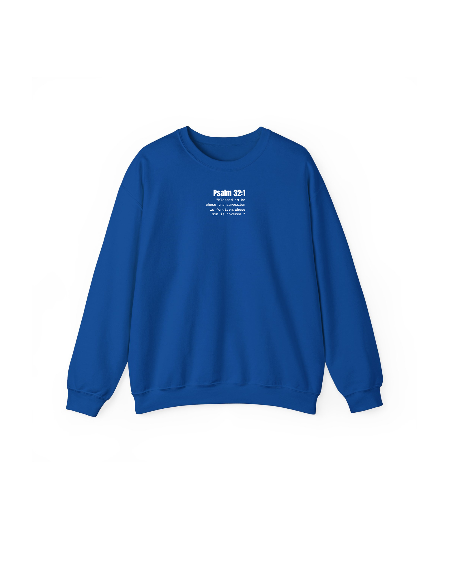 Celebrate your salvation with this Covered Psalm 32:1 Typewriter Scripture Crew Neck! Inspired by the scripture Psalm 32:1(King James Version Bible), "Blessed is he whose transgression is forgiven, whose sin is covered." This crew neck sweatshirt is soft, comfy, and made with good quality that lasts, wash after wash.
